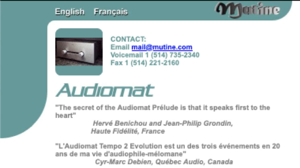 My 2006 site was the biggest site for a hi-fi distributor; it had taken me 9500 hours (madness...), and an investment of 27,000 cad for my fellow developer (whom this excess exhausted as much as me... he thought "branding", these sites of a few pages, for which he has a talent that I consider exceptional, whereas I thought "culture, information, sharing"...); his perfect layouts plus my unique menu system got me a call from the developers of the Louvre museum site in Paris, asking me to share the technique! The "tone" of the site was Art, which always interests me more than technique.