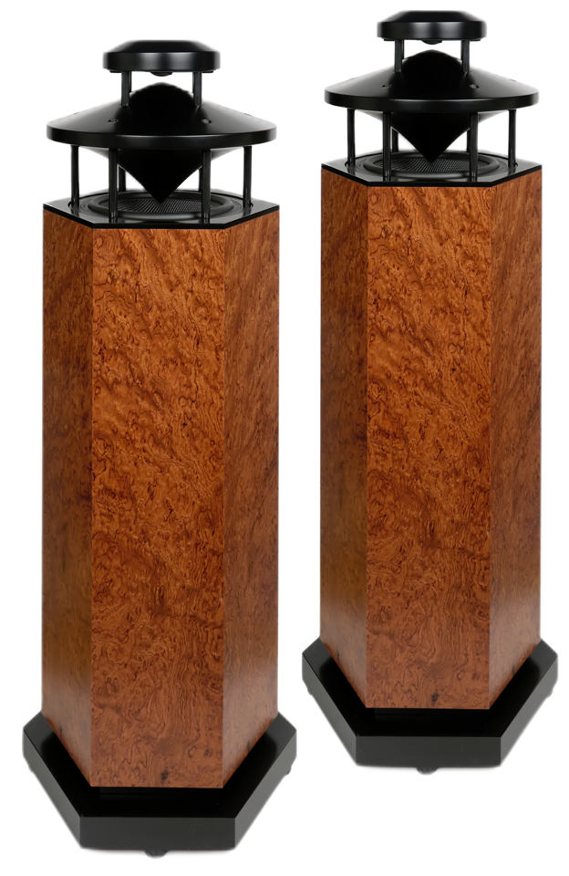 Also fascinated by omnidirectional speakers, JMR released the “Reference”: omni for the medium and the tweeter, more traditional with the bass. A superb speaker, with a price to match (30,000 Sfr at the time).